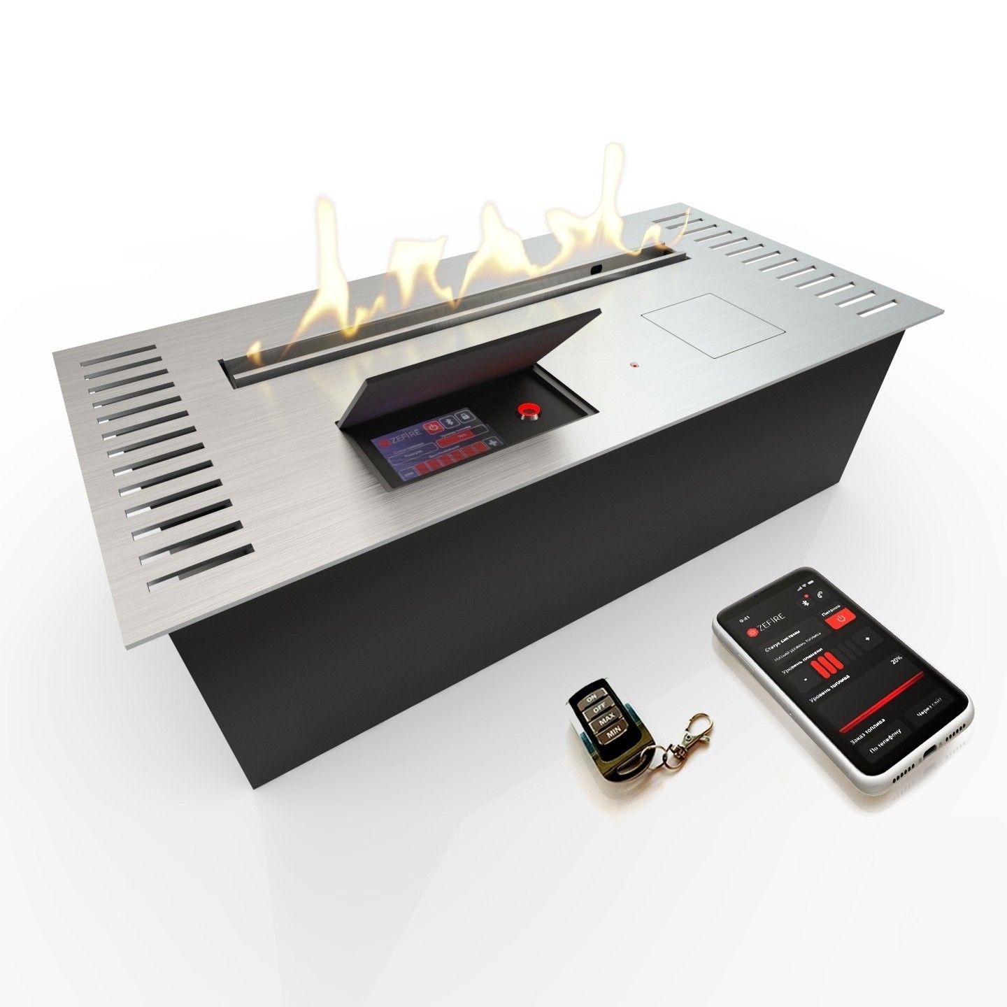 2) Встроенный Wi-Fi модуль, который создает точку для управления камином с помощью смартфона или планшета;